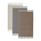 - Set de 3 alfombras con ribetes de flecos, unas alfombras lisas en color beige, gris y marrón, tienen formato rectangular y están tejidas con técnica de aspecto artesanal, realizada a partir de hilos de fibras naturales, 100% de algodón, un material de temperatura neutra que puedes usar durante todo el año y que le ofrece un tacto suave y una pisada agradable.
