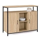 - [Robusto y estable] La mezcla de tablero de aglomerado y marco metálico de alta calidad confiere al aparador una gran estabilidad y resistencia. Los pies ajustables mantienen el equilibrio del armario; el antivuelco proporciona estabilidad adicional