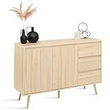 IDMarket Oskar - Aparador bajo escandinavo, 120 cm, 2 puertas y 3 cajones, madera clara, diseño de pino