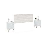 - Mueble fácil y rápido de limpiar con un paño húmedo; requiere montaje (incluye instrucciones y herrajes); no incluye complementos decorativos, sólo incluye el cabezal y las mesitas