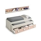 - Cama juvenil en color blanco alpes, combinado con rosa, y llena de color tu habitación. Además en el precio se incluye una moderno estante a juego