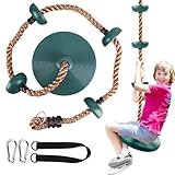 - [ECOLÓGICO Y SEGURO]: Columpio Jardin Exterior está hecho de material duradero y resistente a la intemperie, con asas acanaladas antideslizantes en las cuerdas y un asiento de disco grande para garantizar la seguridad de los niños mientras juegan. El asiento del columpio está hecho de material PE que es cómodo de usar y no se deforma cuando se comprime. El asiento del columpio está fabricado con material PE, cómodo de usar y que no se deforma al comprimirlo. El asiento del columpio tiene una capacidad de carga máxima de 150 kg y puede ser utilizado tanto por niños como por adultos.