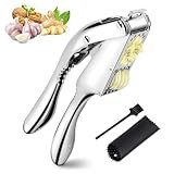 - FUNCIÓN 2 EN 1: Nuestro prensador de ajos multifuncional 2 en 1 puede cortar rodajas de ajo y jengibre, así como triturar pasta de ajo y pasta de jengibre.2 cámaras de gran capacidad pueden triturar múltiples dientes de ajo al mismo tiempo, ahorrando tiempo. El diseño dentado entre los mangos puede triturar nueces y otros frutos secos.