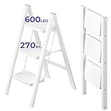 - [¿Lo más importante para una escalera?] ¡Estabilidad! Esta escalera plegable de dos niveles está hecha de acero y soporta hasta 150 kg. Cuando cambias una bombilla, puedes concentrarte en lo que estás haciendo sin tener miedo pues está Certificada GS TüV Rheinland Standard EN14183.