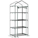 Outsunny Invernadero de Jardín con 4 Estantes Metálicos Puerta Enrollable y Cubierta de PE Vivero Casero de Terraza para Cultivo Plantas Flores Macetas 80x49x160 cm Verde