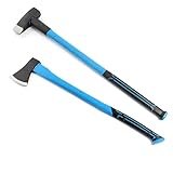 - PRÁCTICO JUEGO DE 2 HACHAS - El juego de hachas de alta calidad de Monzana consta de un hacha grande (longitud total: 88,5 cm) y un hacha pequeña (longitud total: 42,5 cm) para tronchar troncos de todos los tamaños para la chimenea, horno, parrilla o fogata. El juego de hachas está certificado por TÜV Rheinland GS.