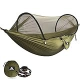 - FUERTE Y FACIL DE INSTALAR --Simplemente coloque la hamaca en el pequeño saco adjunto, póngalo en su paquete y listo. Cuando haya encontrado el mejor lugar para acampar, la instalación es muy sencilla. Usted puede incluso colgar su hamaca entre 2 árboles de más de 6 metros de distancia gracias a los dos 2,8 metros straps.never necesidad de atar las cuerdas para mosquito net.The momento de sacar la hamaca de la bolsa, la red se abrirá automáticamente.
