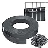 - ESPECIFICACIONES: El juego incluye 1 rollo y 150 clips de fijación. Material: PVC, Tamaño: 75 m x 4,7 cm, Colores disponibles: Verde, Gris, Negro.