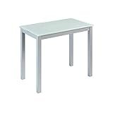 - 🍂CARACTERÍSTICAS: Mesa de cocina extensible | Sobremesa de cristal color blanco óptico | Estructura y patas metálicas pintadas en color gris | Materiales: Metal / Cristal | Color: Gris / Blanco