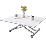 Beliwin Mesa de centro con parte superior elevable, color blanco, altura ajustable, superficie plegable de 2, de comedor para sala de estar y oficina