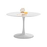 - 【Mesa de comedor redonda blanca】Esta moderna mesa de comedor redonda de tulipán de 110 cm tiene un estilo de mediados de siglo, combinada con una base de pedestal de metal resistente y una mesa de MDF. La base de soporte del pedestal, no solo hermosa sino mucho más estable, recibió un tratamiento especial para que sea antioxidante y resistente. Suficiente espacio para uso de 4-6 personas.