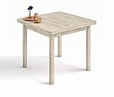 - La Mesa de Comedor Cuadrada Extensible, es una mesa de tipo libro ideal para salones pequeños ya que ocupa muy poco espacio y podrás ampliarla hasta 180 cm tan solo cuando tengas invitados en casa. Su acabado en color Artisan y diseño moderno, hacen que la mesa combine muy bien con diferentes estilos de decoración. Es una mesa robusta, de fácil limpieza y fabricada en melamina anti rallado.