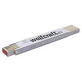 - Metro plegable de madera de haya de 2 metros de longitud; color blanco/amarillo; canto recto continuo en estado desplegado ideal para marcar líneas