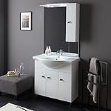 • Medidas del mueble de lavabo Athena son: 80 cm (ancho) 86 cm (alto) x 45 cm (fondo). Medidas del espejo: 77 cm (ancho) x 50 cm (alto) x 1,8 cm (fondo).