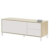 Habitdesign Modulo de TV 2 Puertas y 2 Cajones, Mueble TV, Modelo Brooklyn, Acabado en Roble Canadian y Blanco Artik, Medidas: 130 cm (Ancho) x 47 cm (Alto) x 41 cm (Fondo)
