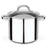 - Elegancia y Resistencia: Fabricada con acero inoxidable 304 satinado y equipada con asas de alambre soldado de acero inoxidable, esta olla combina elegancia y durabilidad en tu cocina, proporcionando una base sólida para tus aventuras culinarias