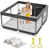 - 【Material HDPE no tóxico y seguro】El parque infantil cumple la certificación de seguridad EN71. Fabricados con material HDPE seleccionado, sano y respetuoso con el medio ambiente, sin BPA ni otras sustancias nocivas. El material HDPE de alta calidad es resistente al desgaste, a prueba de decoloración y fácil de limpiar. Seguro, inodoro y no tóxico parque bebe no teme que el bebé lo lama y muerda.