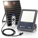 - [Súper brillante] El chip LED del foco adopta tecnología avanzada, el luz LED foco solar de 300 W puede proporcionar luz blanca fría de 6500 K y un brillo de hasta 3000 LM, y el ángulo del haz es de 90 ° para iluminar cualquier rincón.