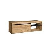 • MUEBLE DE TV CON 1 PUERTA: mueble bajo para colocar la televisión de estilo nórdico, con espacio para consola o decodificador. Este mueble auxiliar te proporcionará un espacio interior de almacenaje donde guardar objetos, desde libros hasta vajillas.