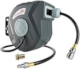 - [CÓMODO] El carrete de manguera de aire comprimido se puede encajar en cualquier longitud. Gracias a la retracción automática, la manguera se rebobina sola cuando se necesita, sin molestas manivelas.