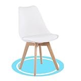 Dekohome Sillas de Comedor, Sillas de Cocina Nórdicas con Asiento Blando, Tapizado y Patas Resistentes de Madera de Haya, 1 Silla, Blanco