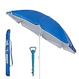 • Ajustable, reclinable y fácil de instalar: sombrilla playa con mástil regulable en altura (150-215 cm), reclinable para orientar la sombrilla según la posición del sol y con terminación en pica para clavarlo fácilmente a la arena