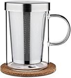 - 🍵 JUEGO TAZA DE TÉ PERFECTO: Disfruta de la armonía con nuestra taza de té de cristal de borosilicato de 400 ml, el infusor de malla fina de acero inoxidable y la tapa, redondeados con un posavasos de corcho natural.