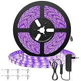 - Tenga en cuenta que: Lámpara UV: esta tira de luz UV de alta calidad de 10 metros con 600 piezas de LED de luz UV (vida útil de 50.000 horas, alta eficiencia energética). Longitud de onda: 390-400 nm, duradera sin cambio de color. Brilla en los objetos blancos y los resalta brillantemente