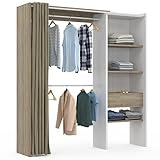 - El Armario Vestidor 1 cajón y cortina, especial para dormitorios que tienen poco espacio. Es muy práctico y funcional ya que es reversible, el módulo de los estantes se puede montar a derecha o izquierda y con tan solo cortar las barras se puede pasar de tener 160 cm a 110 cm. Incluye 2 barras de colgar, 4 estantes y 1 cajón que te ofrecen mucho espacio de almacenaje para tu ropa y complementos, y en el hueco inferior tienes espacio suficiente para colocar el calzado o alguna caja.