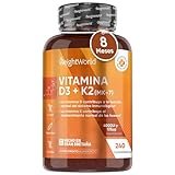 - ALTA DOSIFICACIÓN: 180 pequeños comprimidos vegetarianos con 5.000 UI (unidades internacionales) de vitamina D3 y 100 mcg de vitamina K2 (MK7 en forma totalmente trans) por comprimido. Una potente combinación para los niveles de calcio y los huesos.
