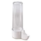 • Bebedero de plástico blanco y depósito de plástico transparente.